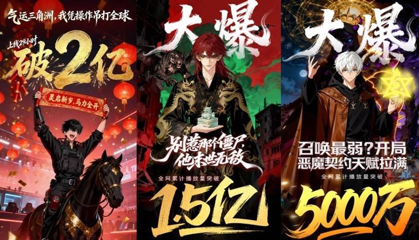 当前,万兴剧厂的全链路工业化生产能力已在众多爆款中得到验证。今年春节档,万兴剧厂赋能灵漫快创推出的《气运三角洲,我凭操作吊打全球》,仅3人团队、耗时5天完成制作,上线29小时播放量突破2亿,连续登顶多个平台漫剧榜单榜首;同期赋能的新作《我在惊悚游戏开诊所》《吞噬进化:从蚂蚁吃到神明》跻身漫剧日榜Top30。